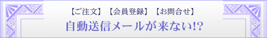 この自動送信メールは、即時に必ず送り出されますので、このメールが届かない場合には、その後のメールも届かないことになりますので、下記の再確認をお願いいたします。 同時に、何らかの方法で当店へもご連絡をいただければ幸いです。