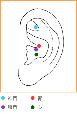 《ツボを選定》 耳つぼは身体の状態により適切な位置に貼り分けます。 「ダイエットならこの3ヶ所!」などといった一律的なものではありません。 ツボの選定を正しく行いましょう。 ★耳つぼの位置の取り方(探し方)は、当店の「耳つぼ講座」で学べます。